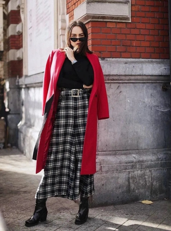论最美的打开方式,当然是格纹大衣+裙子,裙子灵动飘逸自带仙气,可以让冬季里易显厚重的大衣look都变得轻盈浪漫起来。