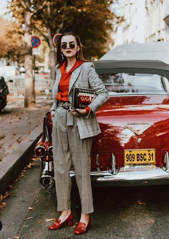 天生就是铅笔腿的姐妹,一定要试条红格子裤,穿上它自带贵气的名片。