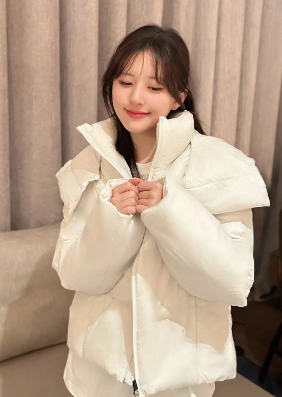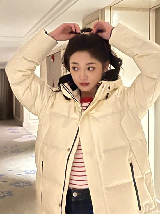 如果环境允许,可以尝试下浅色羽绒服。毕竟冬天的天气已经够沉闷,浅色羽绒服像是“透口气”般的存在,让人看起来也更加软萌温柔。