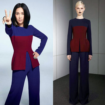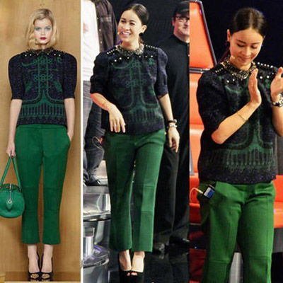 那英在上一季好声音中穿着Louis Vuitton 2012早秋系列的宽肩上衣和九分裤,发型简单利索,领口的装饰恰到好处,宽肩设计合她的霸气,英姿飒爽!