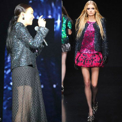 年初在屠洪刚全球演唱会上。那英身穿Roberto Cavalli 2012秋冬装助阵,和一般的整套品牌装扮不同,那姐这身利用了大牌的单品自行搭配,内搭半透视的通花黑长裙,性感又不暴露,层次感突出,果然“时尚Icon”的称呼不是盖的。