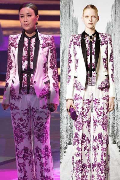 元老级导师那英,在中国好声音第二季服装造型上有所突破,开始尝试新的服装品牌,她之前最常穿的牌子是Roberto Cavalli。