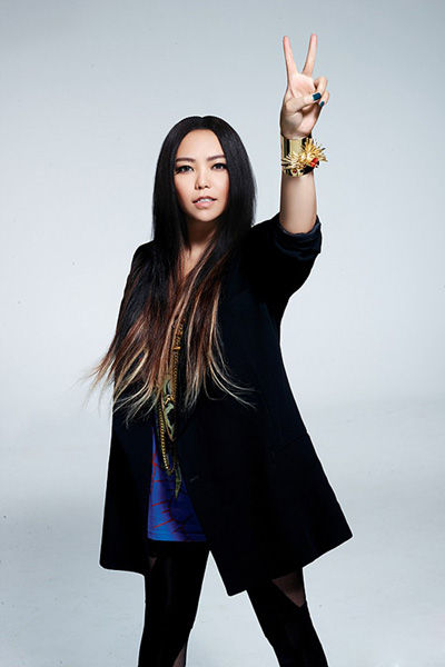 在张惠妹的自创品牌AMEI女鞋2013春夏上海发布会上,她身穿的超长款西装外套加衬衫领带简单时尚,酷感十足,一头金色卷发狂野奔放。