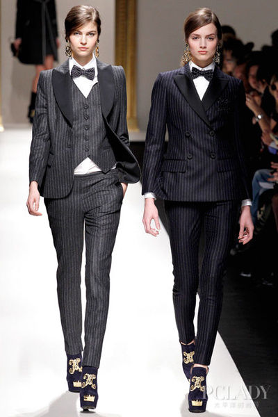 Moschino 2013秋冬黑色无袖立体压花上衣配白色珠宝镶嵌半裙,优雅可人的下午茶造型之选。