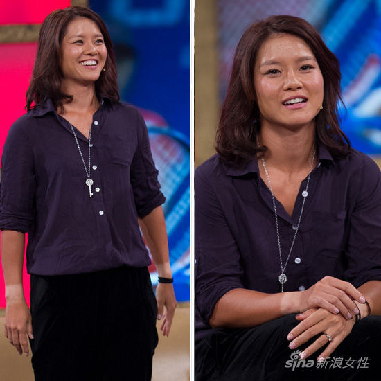 2012年7月12日,北京,李娜做客鲁豫有约,在伦敦奥运会前敞开心扉,讲述自己的拼搏故事。紫色衬衫搭配黑色裤装,在在场上风光过后的娜姐回归平静。