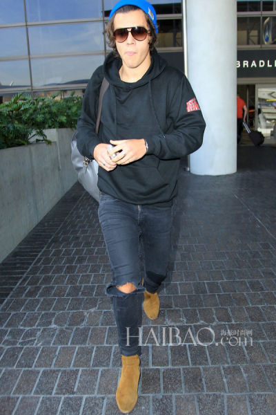 当地时间2月20日,1D主唱哈里-斯泰尔斯 (Harry Styles) 在洛杉矶国际机场现身,“哈卷”头戴蓝色毛线帽迅速离开!