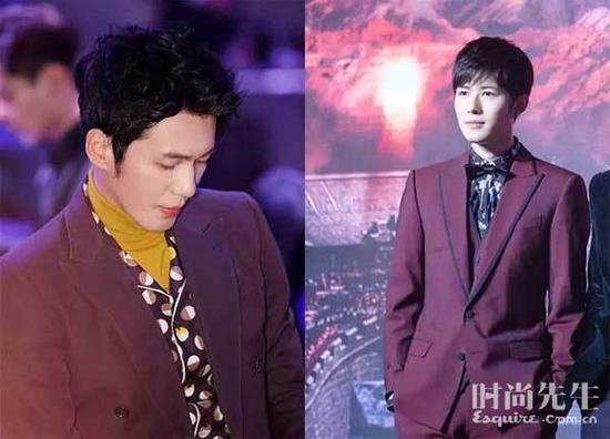 印花西装算是比较难驾驭的了,它对你的身材、比例都有比较高的要求。(李易峰就是印花西装的忠实粉丝)在选择印花西装时,请尽量穿套装。套装的存在绝对有它的道理,这样上衣和下装上的印花元素就比较一致,不至于让人眼花缭乱。