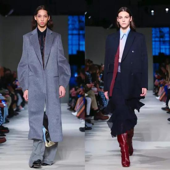 新系列走的同样是休闲但时髦的路线,Oversized、有点男性化剪裁的阔腿裤、外套以及西装夹克层出不穷,它们搭配着飘逸的雪纺裙装和针织裙,硬朗中带着些许柔美,带来刚柔并济的感觉。
