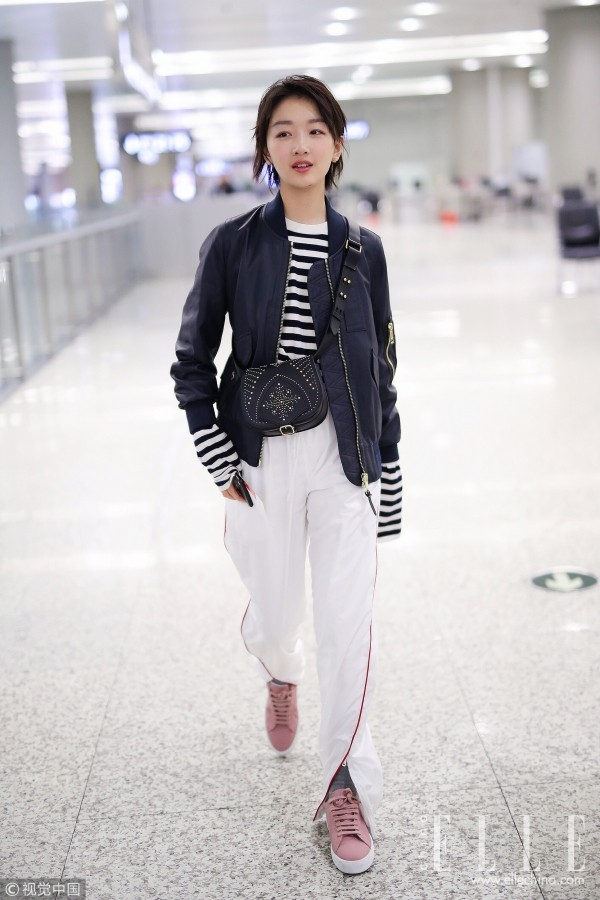 和其他女明星不同,周冬雨的整体穿衣风格还是偏“女孩”。在她私服里经常能看到被带入的街头元素。冲锋衣配legging,乐福鞋里消失的一只斑点袜子,为这样的不对称感的巧思点赞!