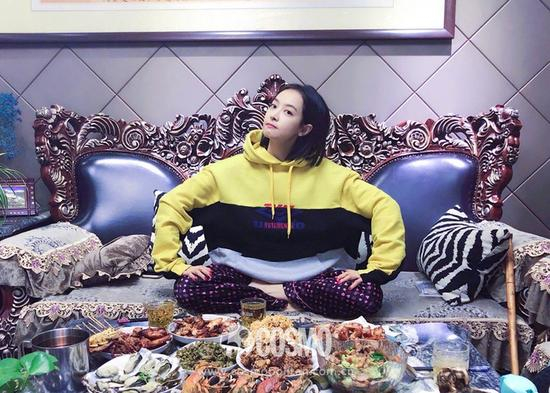 最近真的很冷,机场凹造型高手宋茜也窝在家里了!面对一桌子好菜,茜妞(像你我一样)随意穿着睡裤,套着一件大大的黄黑拼色卫衣。轻松舒适指数爆表的同时,wuli茜只是换了个地方美腻~