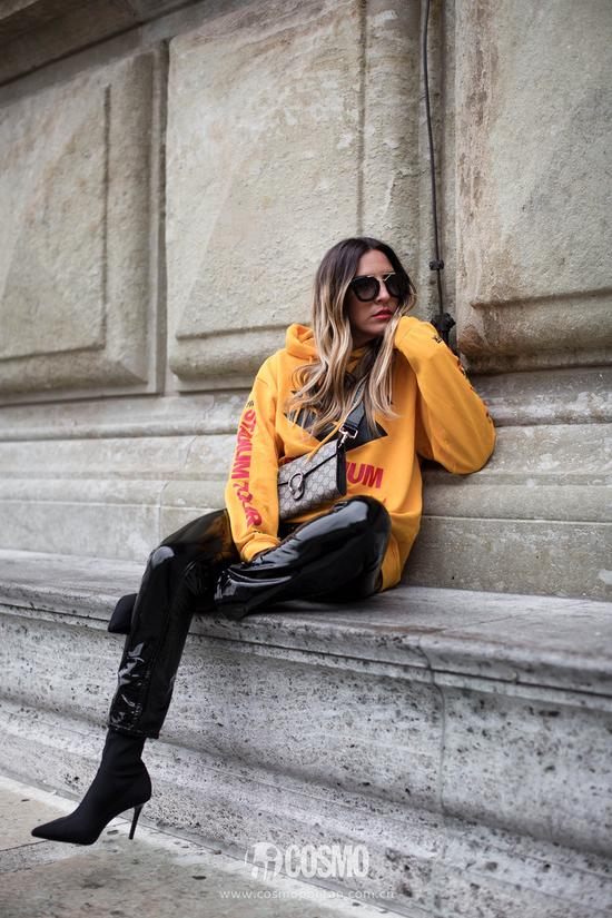 连帽款卫衣的减龄效果也一级棒,看前面三位女星的连环撞衫就知道了……挑选黄色卫衣最大的诀窍在于要选大大的款式,才能展现出那种不经意间流露出来的Tom Boy Style。