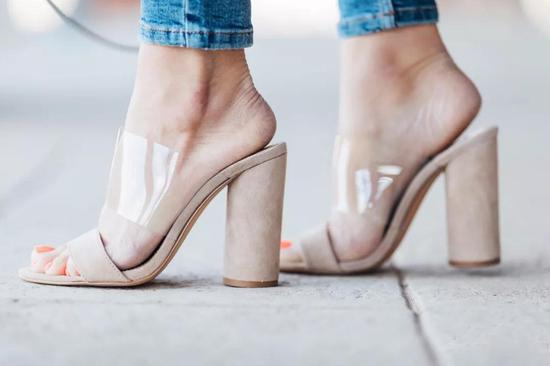 看起来轻盈又纯净的透明鞋跟真的非常适合夏季,能够让你看上去无比清凉,走路带风!