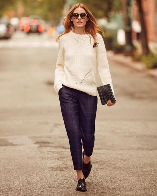 毛衣和西裤都无需很有设计感,素素的就很好看,嫌单调可以在鞋子上翻花头,比如挑一双装饰感比较强的平底鞋。