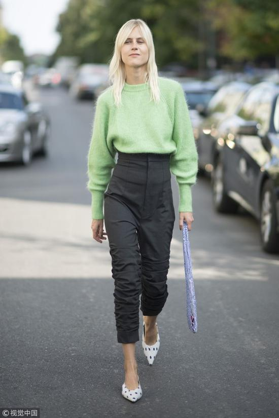 想走造型感路线的女孩,可以选色彩靓丽的毛衣西裤同色系组合,或者毛衣挑色彩饱和度高的款式,搭配一双靴子,整个人就非常吸睛有精神了。