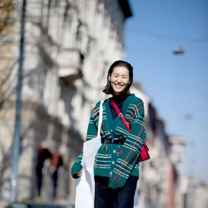 大表姐刘雯前段时间参加时装周就穿了一件绿色的针织开衫,搭配大红色斜挎包,用黑色腰带点缀整体造型,复古又吸睛。