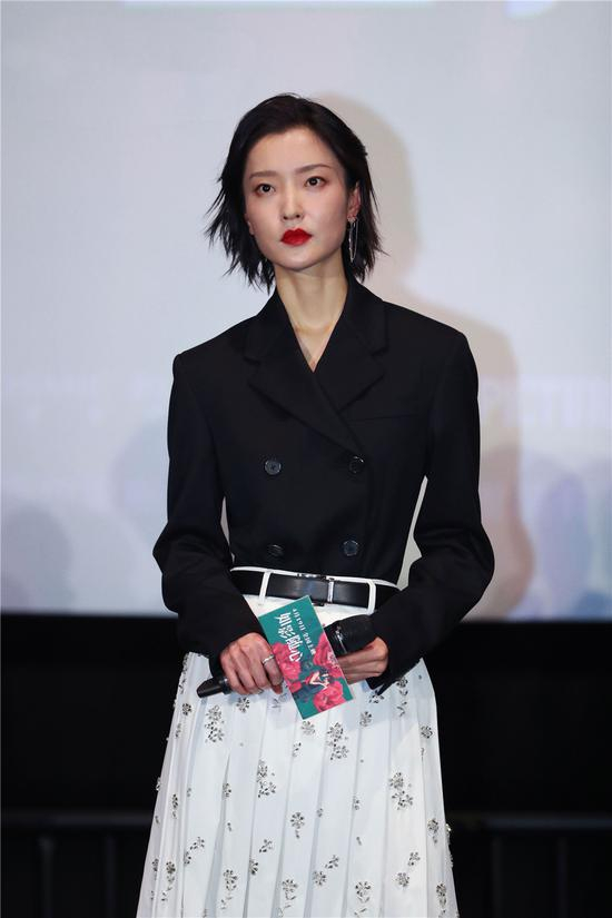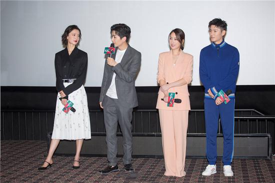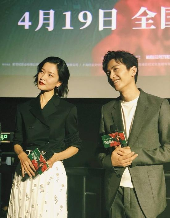 四位主创的路演合照,也是能一眼看到气质独特的杜鹃,不光是穿着上,整体的超模身材气场就不是一般女演员能比的!能看到陈晓与王嘉是西装风与运动男孩,杜鹃则是西装短裙造型,一边的马苏一套粉也非常惹眼。