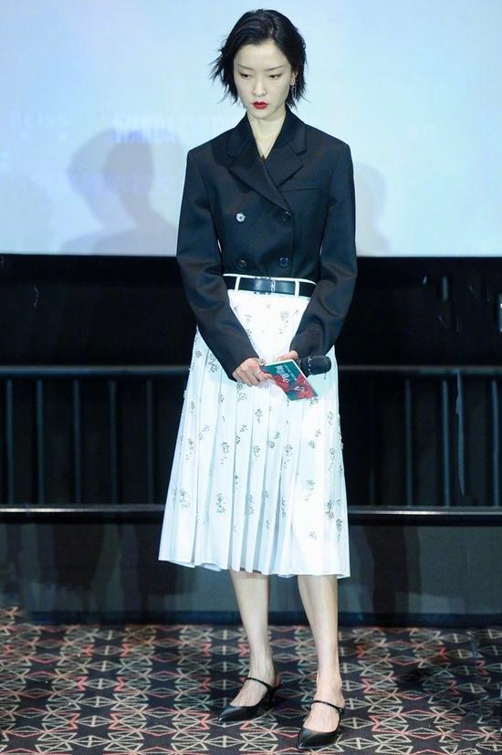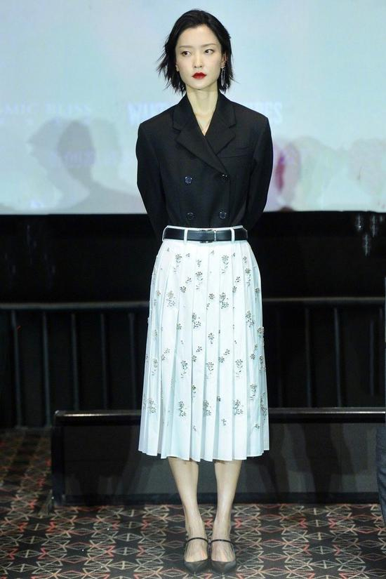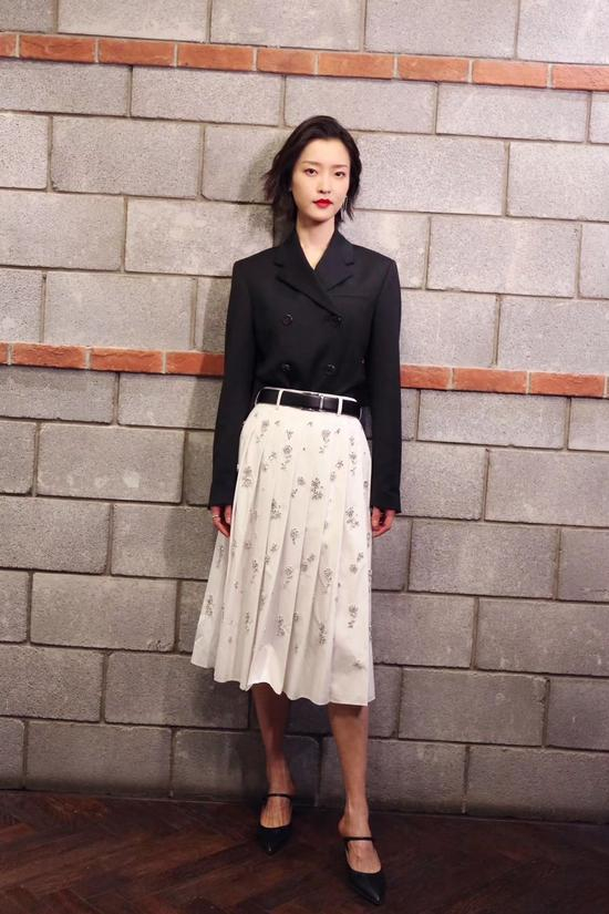 先不说杜鹃这好气质,光是西装配上百褶碎花裙这一点,就不是一般女星敢尝试的造型了,更何况还穿了平底鞋。但说到底,杜鹃骨子里透出来的冷感美,即使是少女的碎花裙子也挡不住,她还是美的冷冽又高级。