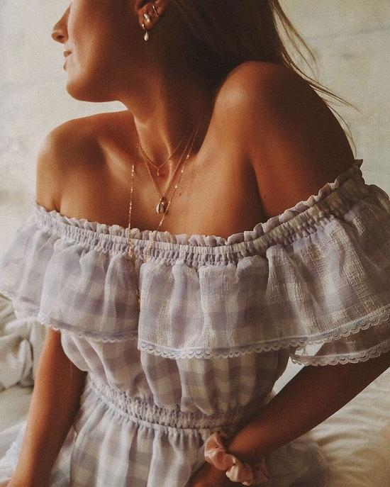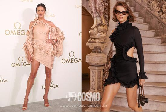 多一层荷叶边装饰不仅仅是增加俏皮感那么简单,它能放大胸部,让肩膀和腰部对比起来更显纤细,从而在视觉上达到显瘦的效果。