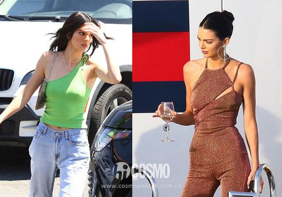 泫雅和Kendall更钟情于街头风十足的不对称吊带,有点小性感。