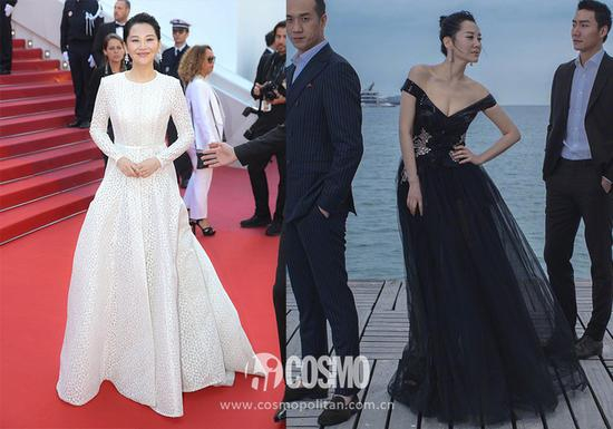 许晴的戛纳行很低调,但也套套精致耐看。深V领口的黑色礼服更突显她的身材优势。