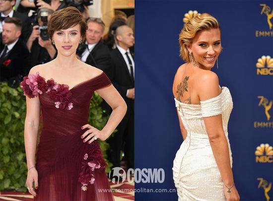不过粗手臂也不完全是要遮住才好看,Scarlett Johansson把锁骨露出来,穿上手臂上有一点点装饰的露肩款礼服就很女神了。