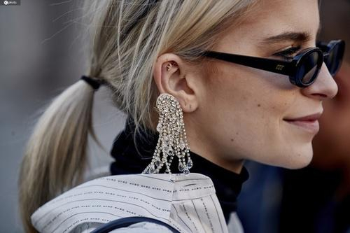 从2016年就开流行的超长耳环热度延续至今,这种不仅修饰脸型,还能凸显出颈部的线条感,使人看上去更加干练时尚。