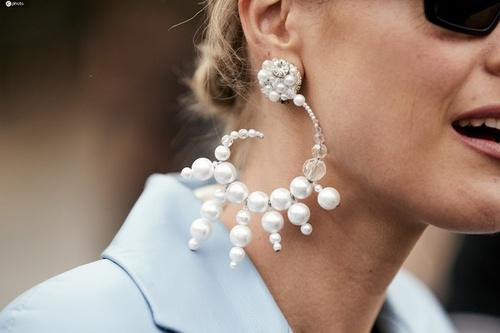 珍珠耳环从17世纪就开流行了,要不怎么会有那副《戴着珍珠耳环的少女》被人们传颂至今。只不过那时的珍珠耳环小巧优雅,而如今,人越有钱戴的珍珠耳环的就越大(不是),越大就越时髦,不信你看2019秋冬耳环流行趋势,模特的珍珠耳环成WiFi式递进变大。