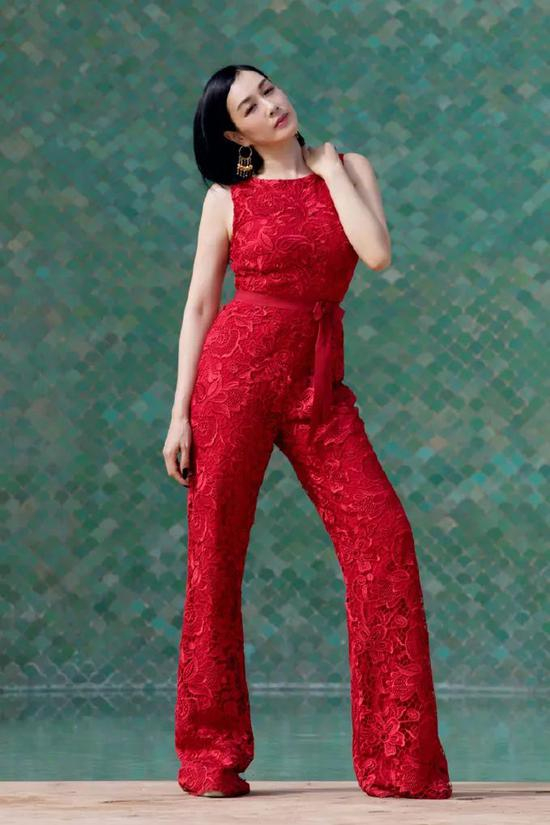 旗袍造型展示完毕后,钟丽缇又为大家奉上了一组她的连体裤服装LOOK,完美展现出自己霸气御姐的一面。在镜头里,只见钟丽缇身穿一袭火红色的蕾丝连体裤,搭配一头乌黑亮丽的及肩短发,看起来又飒又美分外惹眼。
