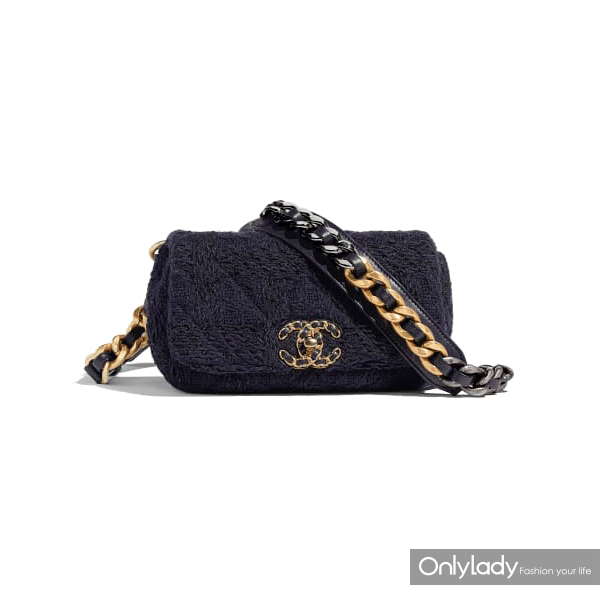 香奈儿19手袋依旧具有超高的品牌辨识度,分为三种尺码,包括大号、中号及小号腰包款,材质则有皮革及斜纹软呢,饰以大号菱格纹绗缝图案;简洁利落的矩形口盖,金属皮穿链肩带,运用银、复古金和钌质镀层,每款均配以香奈儿手袋标志性的双C转扣。
