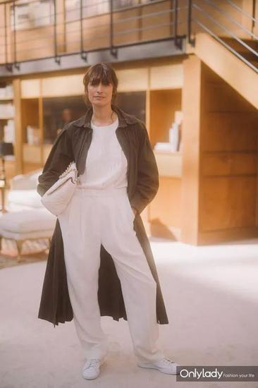 浑身散发着法式性感的巴黎女人Caroline de Maigret用最随性的造型完成不经意的优雅,白色经典款香奈儿19绝对是秋季黑白造型里的终极宠儿。