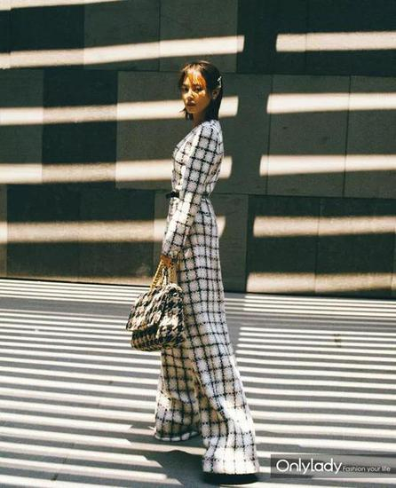 辛芷蕾则选择double格纹的look凸显轻熟女风格,阔腿裤气势十足,香奈儿19优雅加分,眼神则是她俘获众人目光的武器!