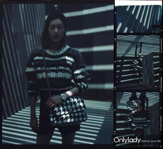 是不是被刘雯的黑白造型酷到,同款包包再看看宋茜优雅的下午茶look吧,黑色透视纱质外套为干练的白色衬衫增加一份神秘感,千鸟格纹复古文艺,这样的她在街头必是令人瞩目的画中女郎。