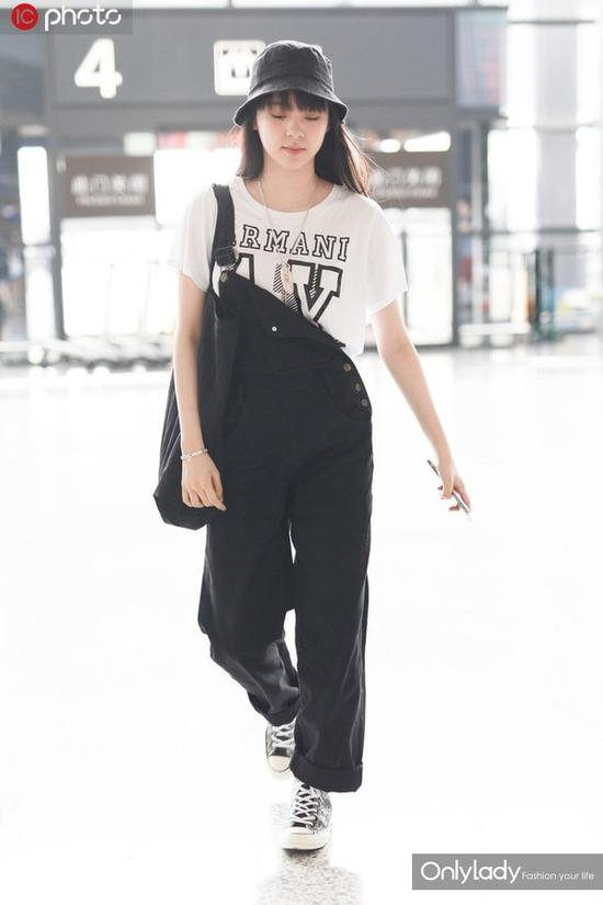 两条背带都齐刷刷挂肩上不是你喜欢的乖巧劲儿?那你可以解锁单肩穿法,另一边背带随他自由发挥嬉皮的街头风也许是你所追求的少女时代,欧阳娜娜黑色背带裤单肩穿法搭配印花白T恤穿上帆布鞋活泼俏皮,也许这样的着装在长辈们眼中就是一个“坏女孩”= =。