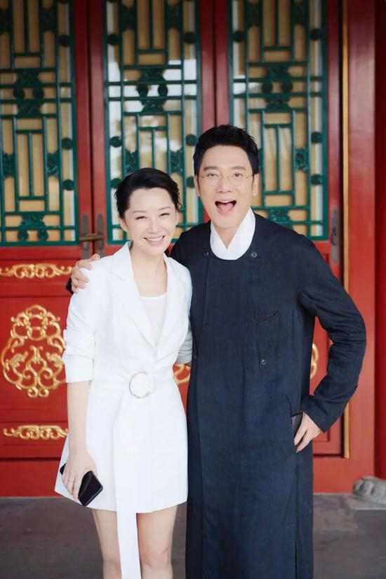 林依轮身穿圆领长褂,与大一岁的许晴合影,隔空凑成经典黑白配敲默契,“青春常在,不老传说”说的就是他俩了吧!