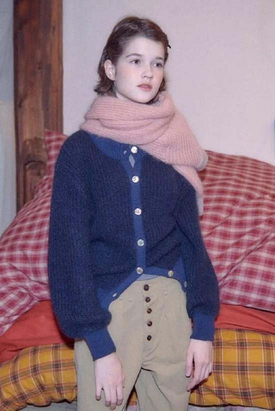 她家的针织衫也是松软又厚实的面料,宝蓝色和橄榄绿都是vintage style必入色,穿万年都不会过时的款式。