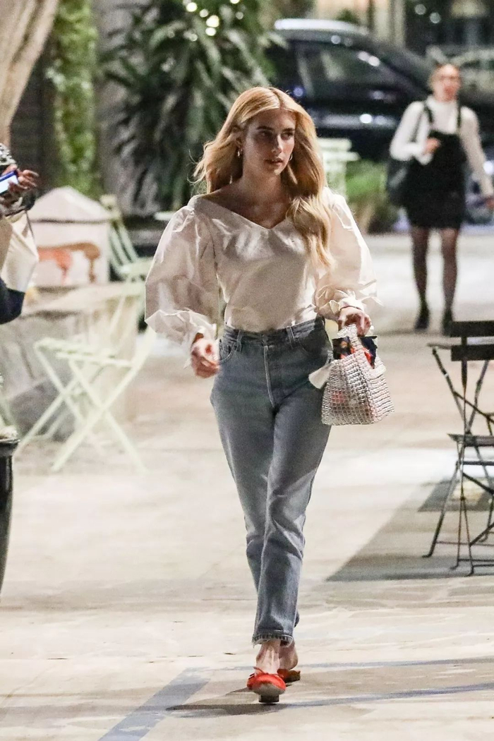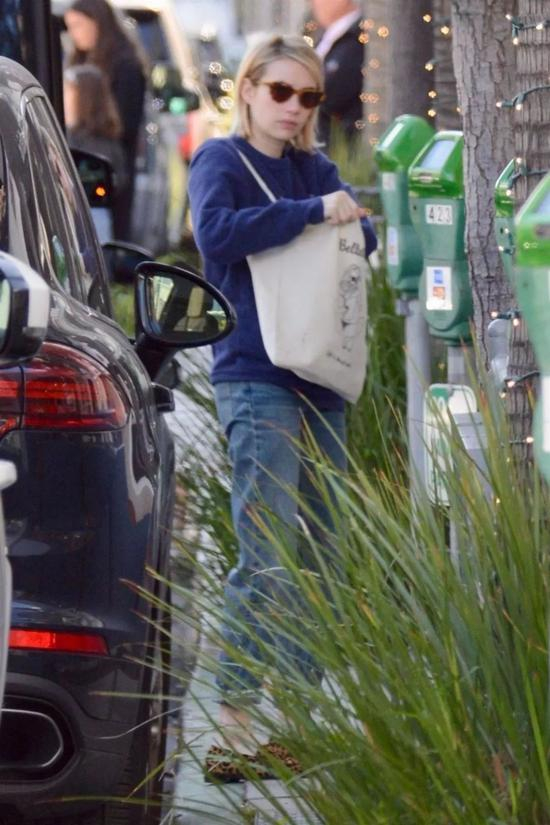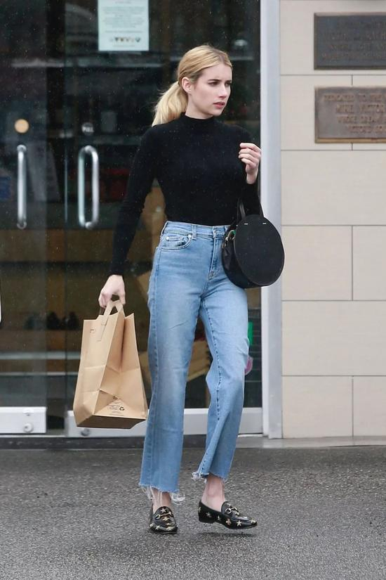 当然Blonde的杀伤力是不可小觑的,稍稍做下头发,换一件略带设计感的上衣和包包,Emma Roberts马上就把基础牛仔裤穿出女神范。