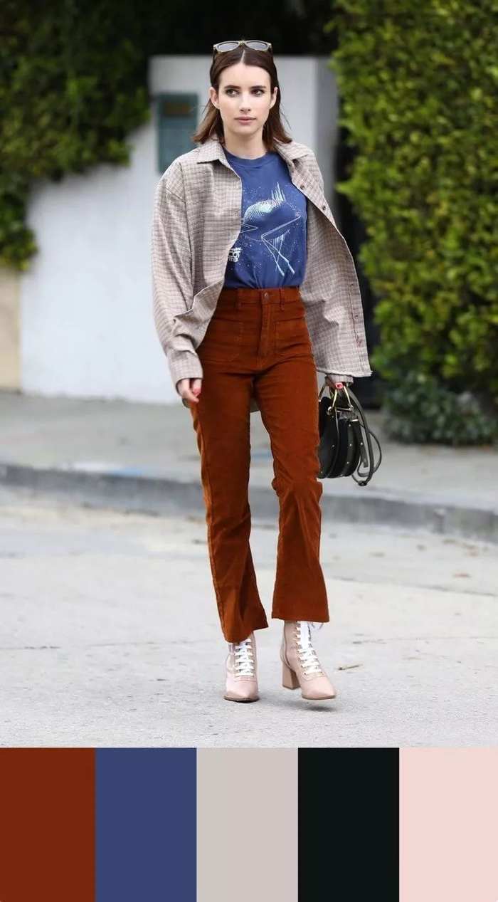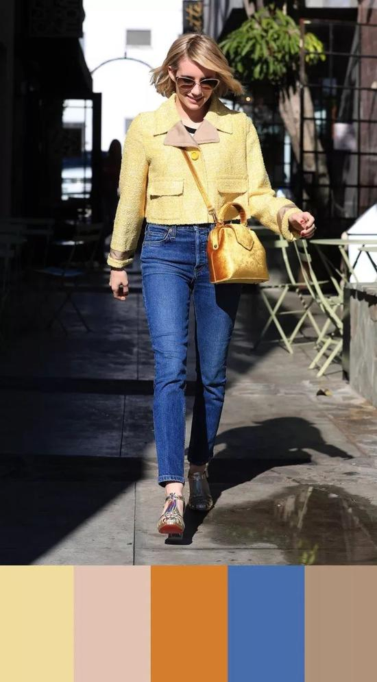 无论是顺色还是撞色,都是Emma Roberts 喜欢的色彩搭配方案,但任何一种她都会搭配得很和谐。