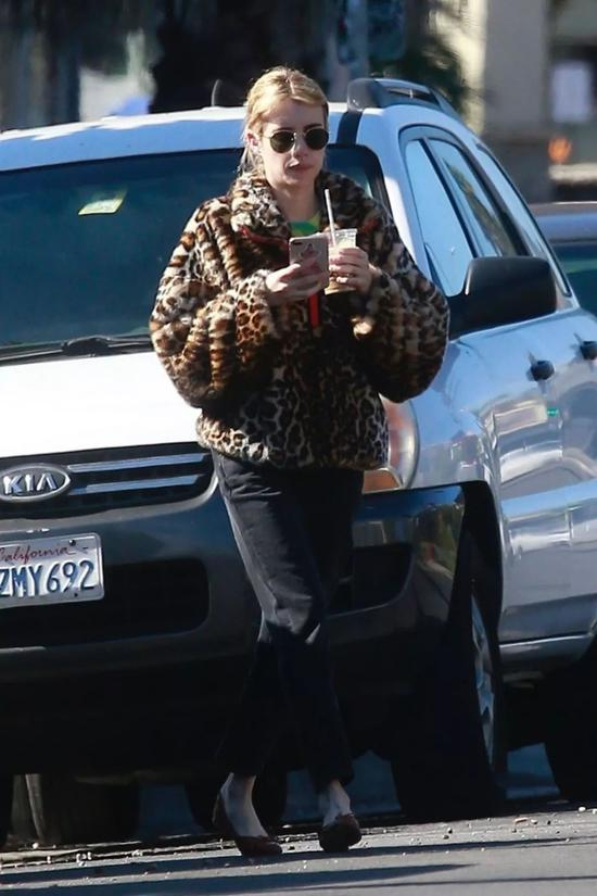 Emma Roberts的豹纹也并不总是低调的,穿上豹纹外套秒变“人间富贵花”,这大概是颜好任性吧~