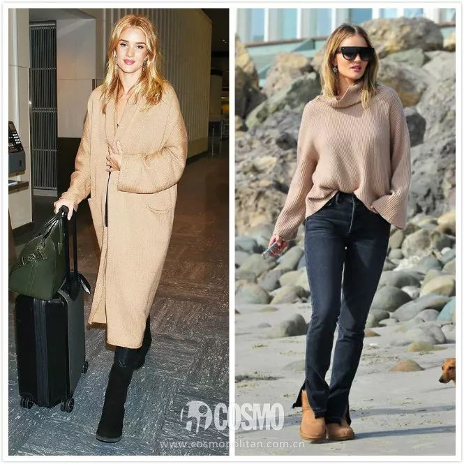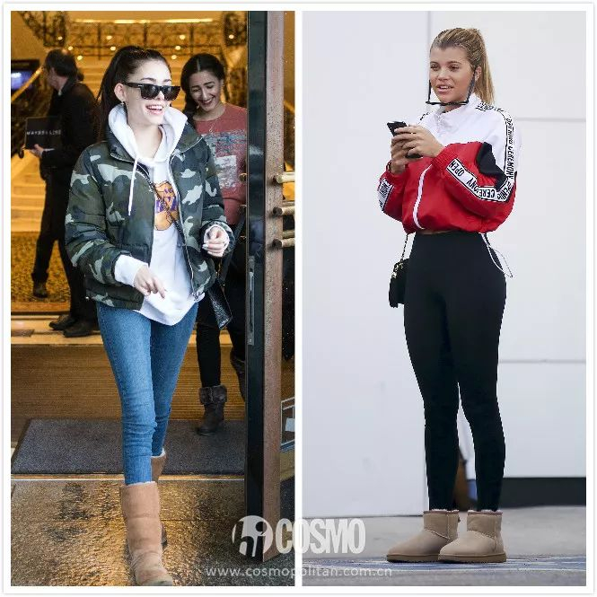 这一点欧美明星抓得还蛮准确,清一色的卫衣卫裤所打造出的effortless chic就是与雪地靴的绝配。