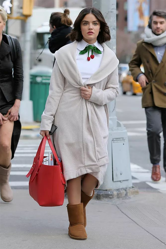 当然随着气温的降低,越来越多的时尚icon开始为大家提供好看的雪地靴搭配方案。