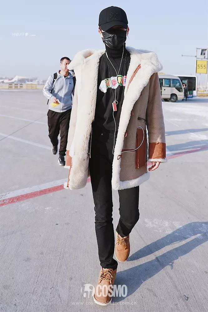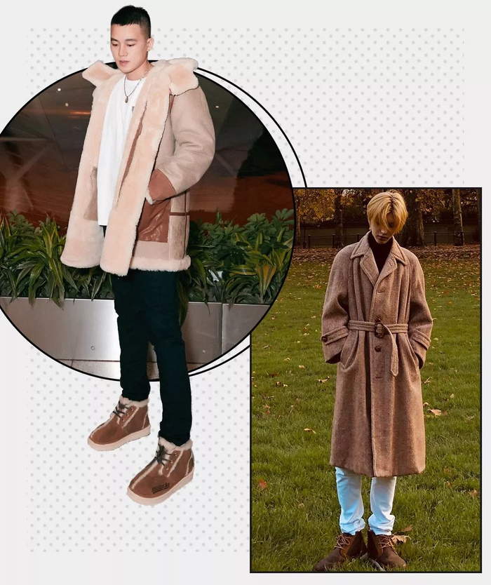男icon们的穿搭以时装感略强的外套搭配休闲的上衣和紧身休闲裤居多,oversize的外套在空间感上都能够和胖乎乎的雪地靴呼应,很适合做搭配参考。