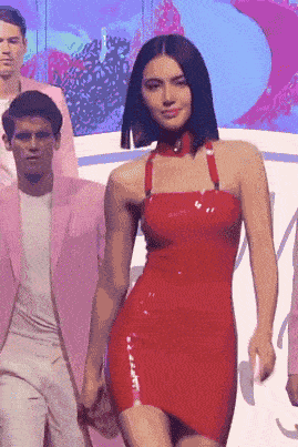 亮眼的红色西装suit,就算是与身旁姐妹的bling bling亮片狭路相逢,也完全没在怕的。