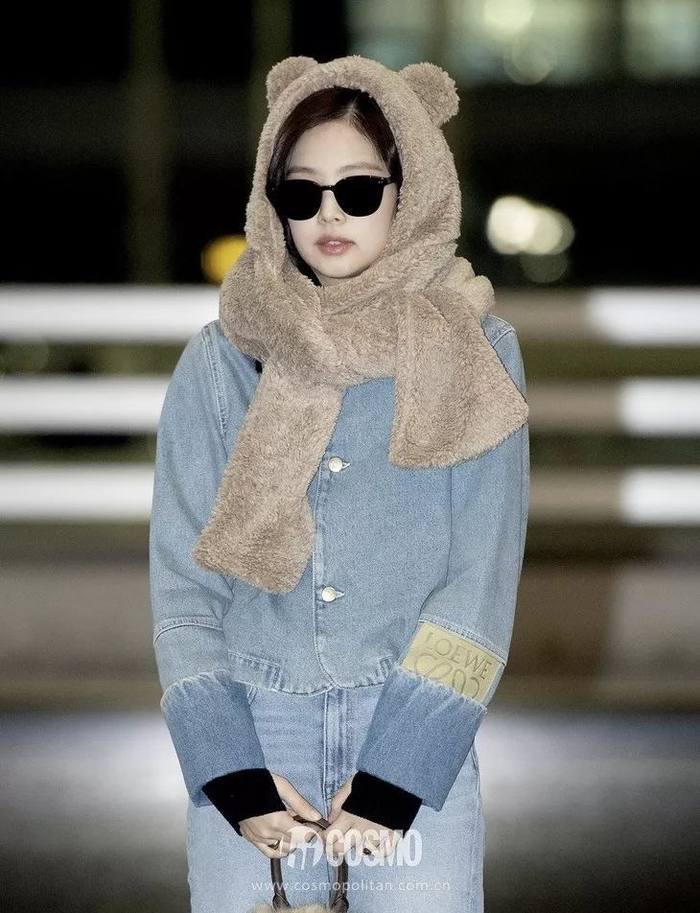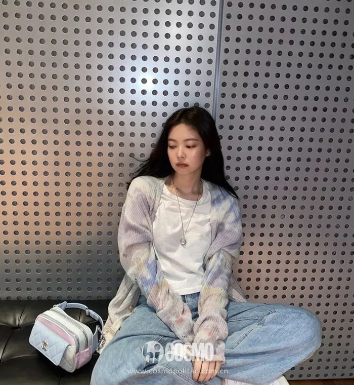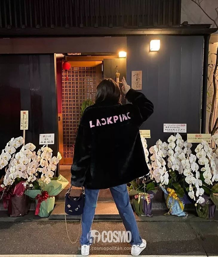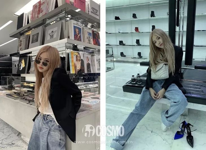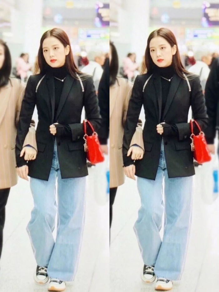 不止Rose,同组姐妹Jisoo、Lisa都对这种搭配爱不释手,特别是黑西服配蓝色仔裤。