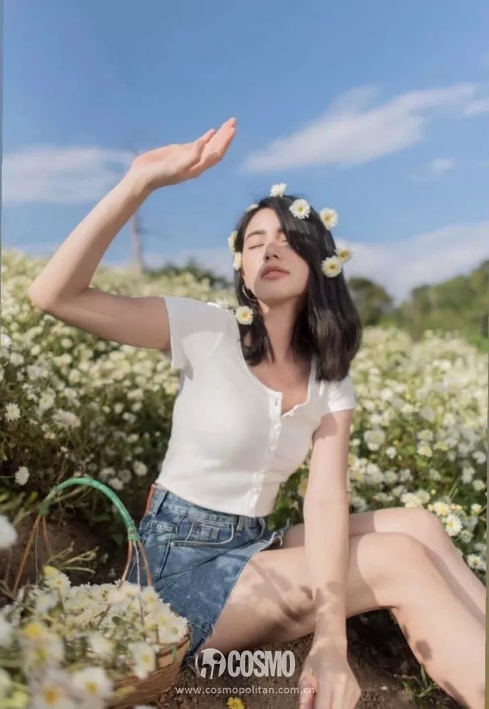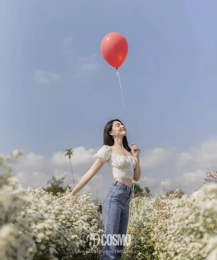 巧用花朵、气球和帽子这些最简便的道具就能打造出“醉翁之意不在酒”的花丛大片。打算春游踏青的仙女们快来学学她。