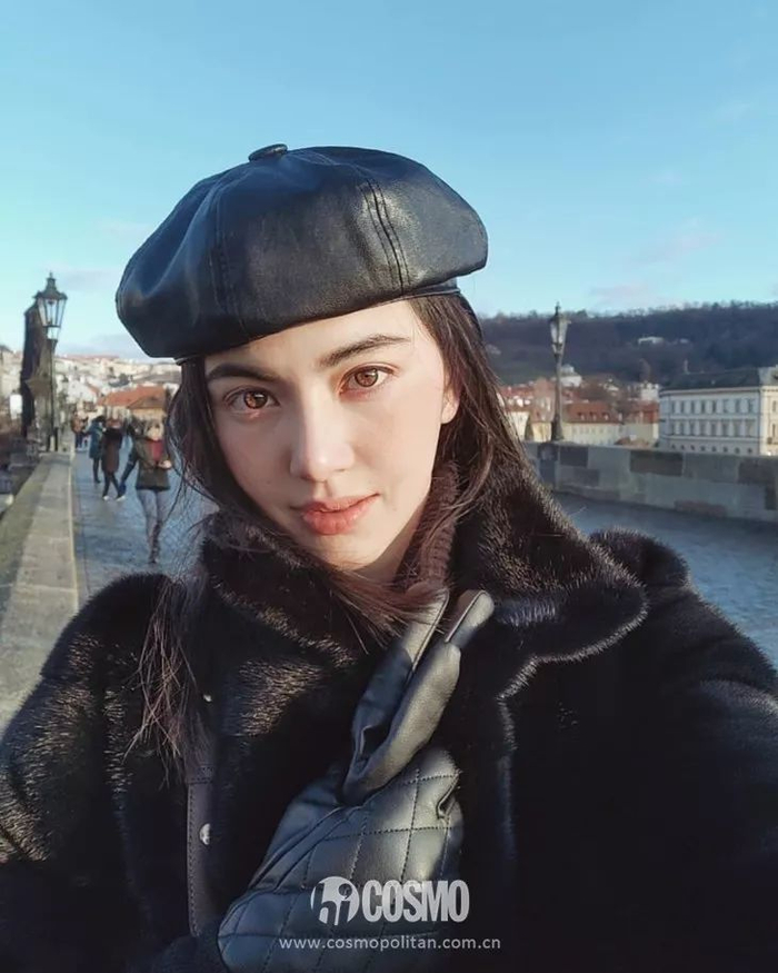 浓颜系美人Mai还把格纹报童帽的英伦复古之美发挥到了极致。