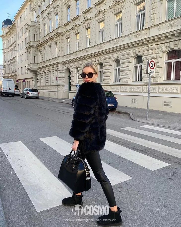 既有真毛触感又温暖的假皮草很显富贵。黑色耐脏,短毛又好打理,作为冬日旅行的御用大衣,各路时髦精都要来一件。