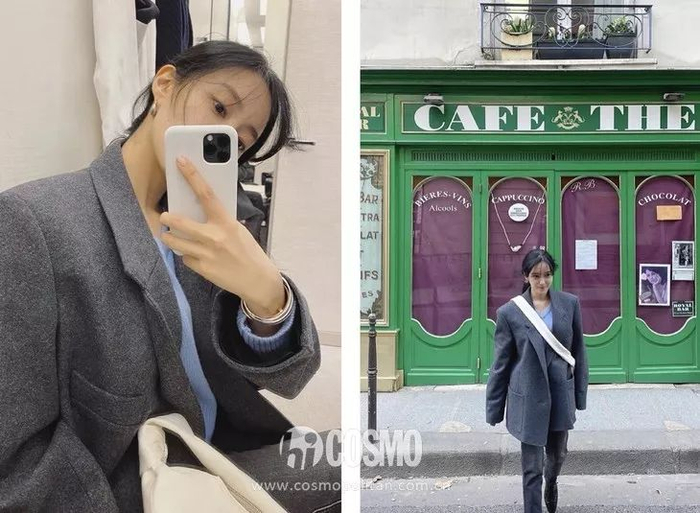 轻松的法式腔调总是在不经意间透着时髦感,Rose欧尼表示廓形西服配丹宁仔裤的基本穿搭最好用,简约大气百看不腻。