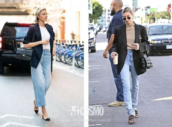 廓形西服配丹宁看不腻