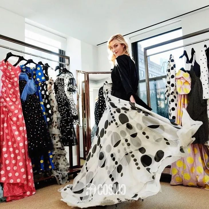 不论是黑裙白点还是白裙黑点,经典黑白融合出的波点裙格调十足,备受一票儿时髦精的喜爱。