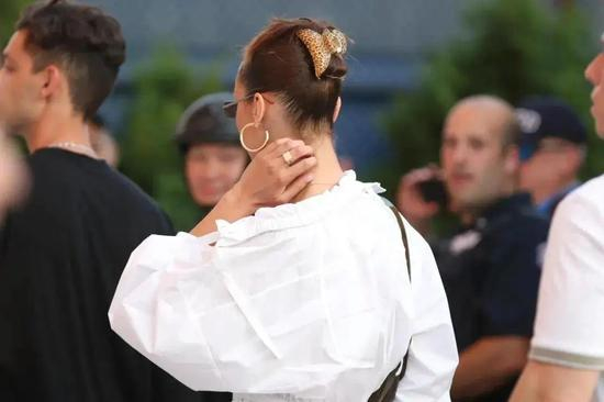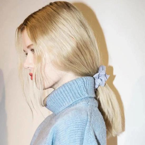 低马尾+发圈的组合很容易get法式少女风,有种刚起床随意挽起头发的慵懒。